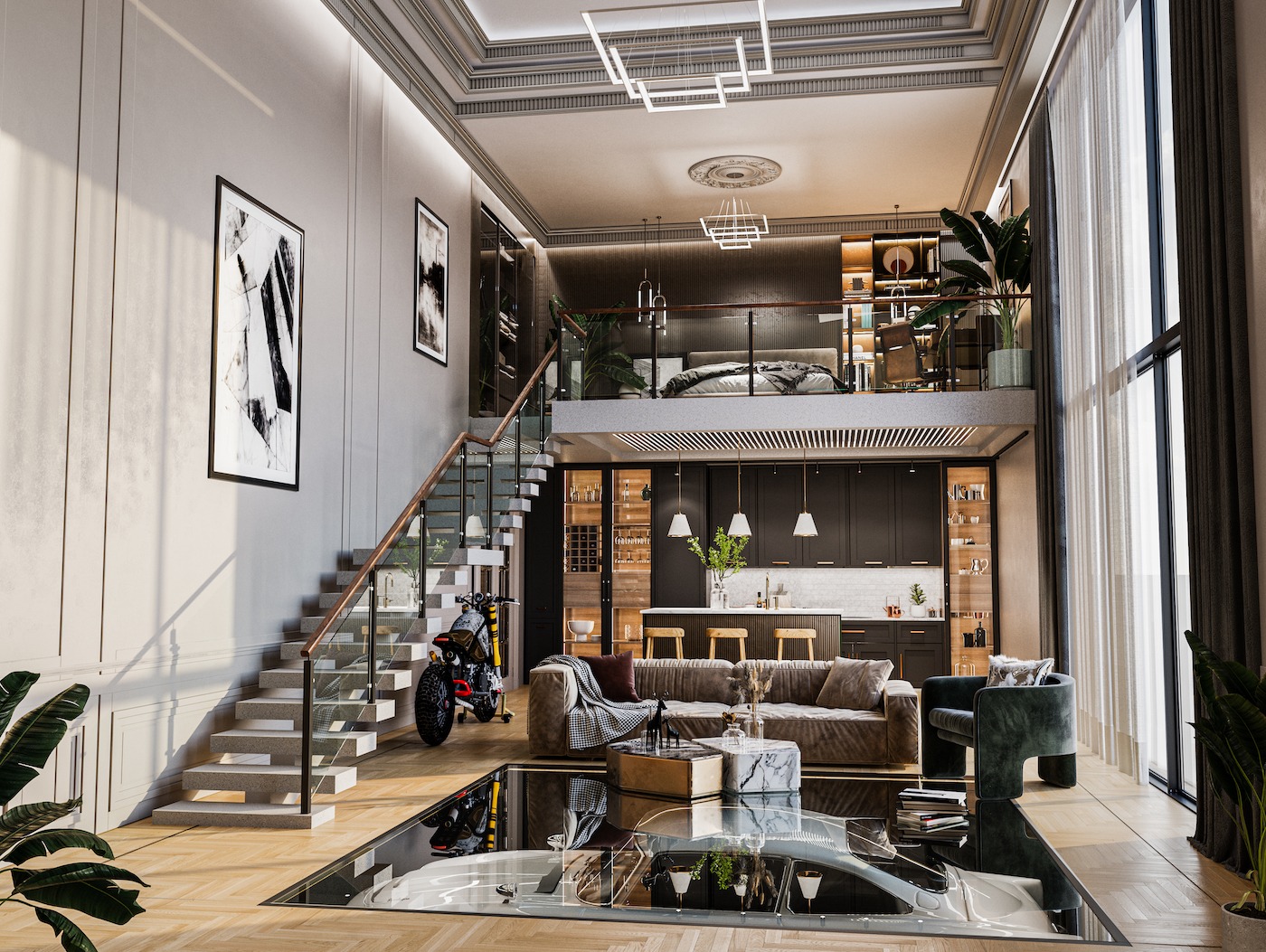 Selle korteri elanik on kindlapeale disainer või vähemalt keegi, kes peab lugu minimalistlikust ja samaaegselt värvikast sisekujundusest. Loft on disainitud olema vaikuse ja rahu kohaks. Ülemiselt korruselt võib leida koha tegemaks loovat ja produktiivset tööd ning nautida vaateid tänavale läbi suure akna. Alumine korrus on mõeldud olema värvikas ja helge elutuba, mida täiendab avatud köök nautimaks seda kõike külaliste ja sõpradega.