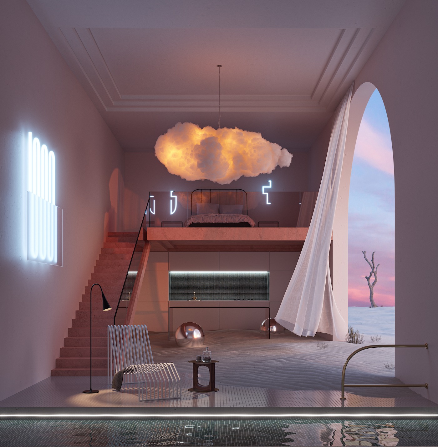 Sürrealistlik ruum unistustest on koht, kus võtta aeg maha ja põgeneda stressi ja maailma probleemide eest. Seal on nii vaikne ja rahulik, et isegi ust ei ole vaja.