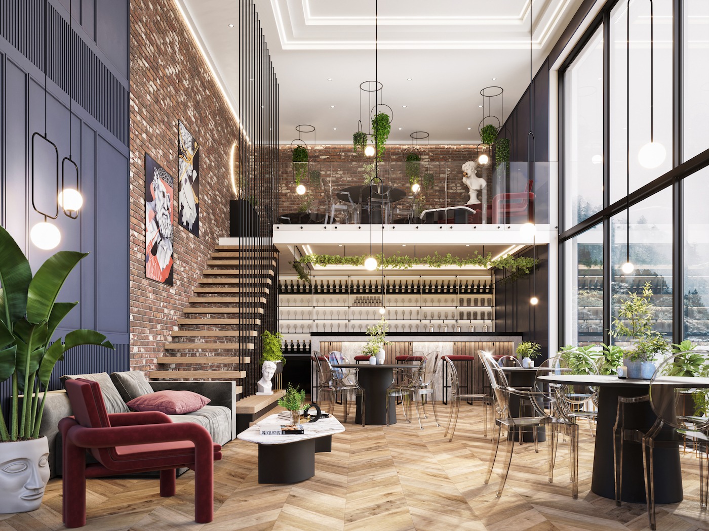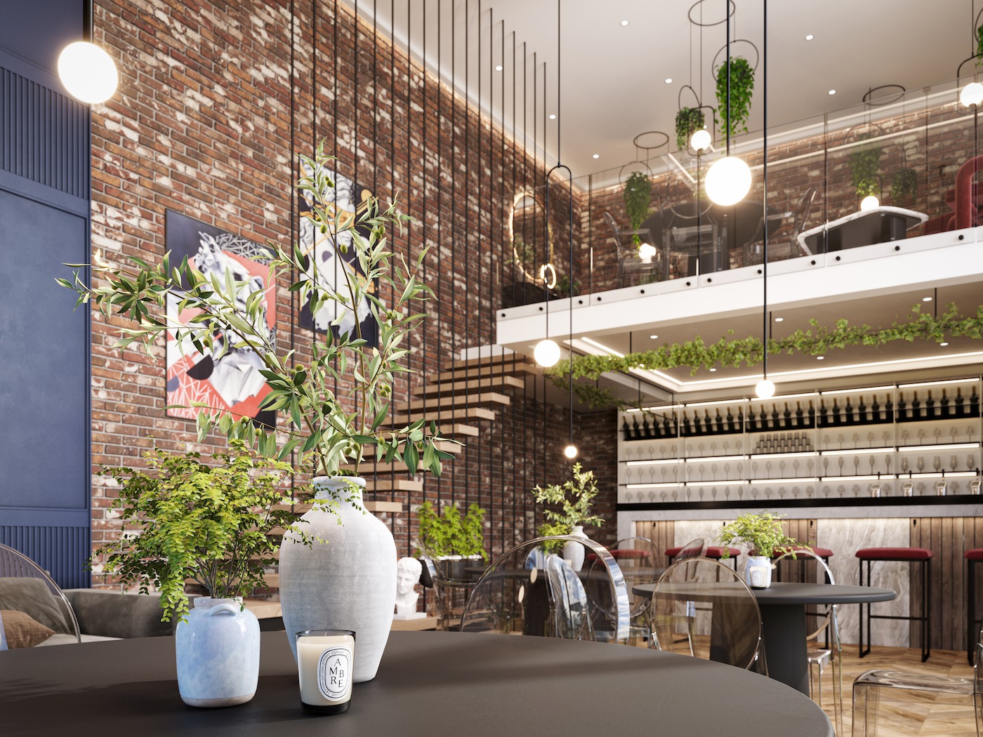 Interjöör on kombineeritud erinevates stiilidest – alates klassikalisest ja lõpetades modernsega. Idee oli näidata kuidas vanemad ja rasked materjalid nagu vanad tellised, sobivad kokku modernsemate ja kergemate materjalidega nagu näiteks klaas. Ja lisaks on lisatud rohelust, et anda edasi hubasust ja kodutunnet restoranile.